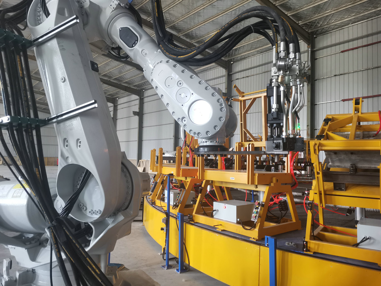 圓盤生產(chǎn)線由高壓發(fā)泡機(jī)、機(jī)械手、模架、模溫機(jī)、圓形轉(zhuǎn)盤、掃碼器、自動(dòng)控制系統(tǒng)等各裝置組成 適用于生產(chǎn)汽車座椅、頭枕、內(nèi)飾件、扶手、摩托車坐墊、家居家具用品等各類需要模塑的聚氨酯發(fā)泡產(chǎn)品 可實(shí)現(xiàn)高效、精確生產(chǎn),高產(chǎn)能低勞工,模塊化、高端配置實(shí)現(xiàn)穩(wěn)定運(yùn)行、維護(hù)簡便。
